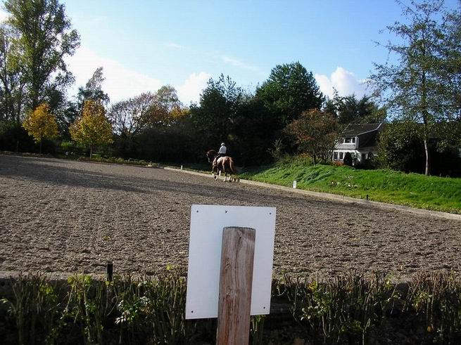 Ein 20 X 40 Meter großer Außenplatz mit Cavalletis und Hindernisse, der überwiegend zum Longieren und Gymnastisieren der Pferde genutzt wird und ein 2. Außenplatz mit den internationalen Dressurmaßen 20 x 60 Meter sind aufgrund der guten Drainage und der Gelenk- und Huffreundlichen Trettschicht fast ganzjährig nutzbar.